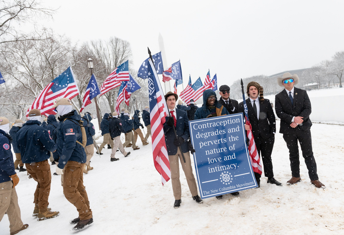 - Patriot Front was out there, and had a little networking sesh with New Columbia Movement, because apparently, M4L is where all the militant nationalists go to be seen.
